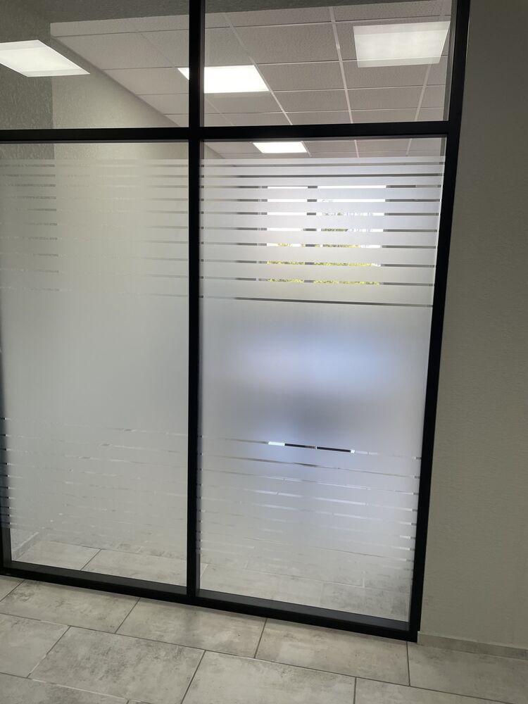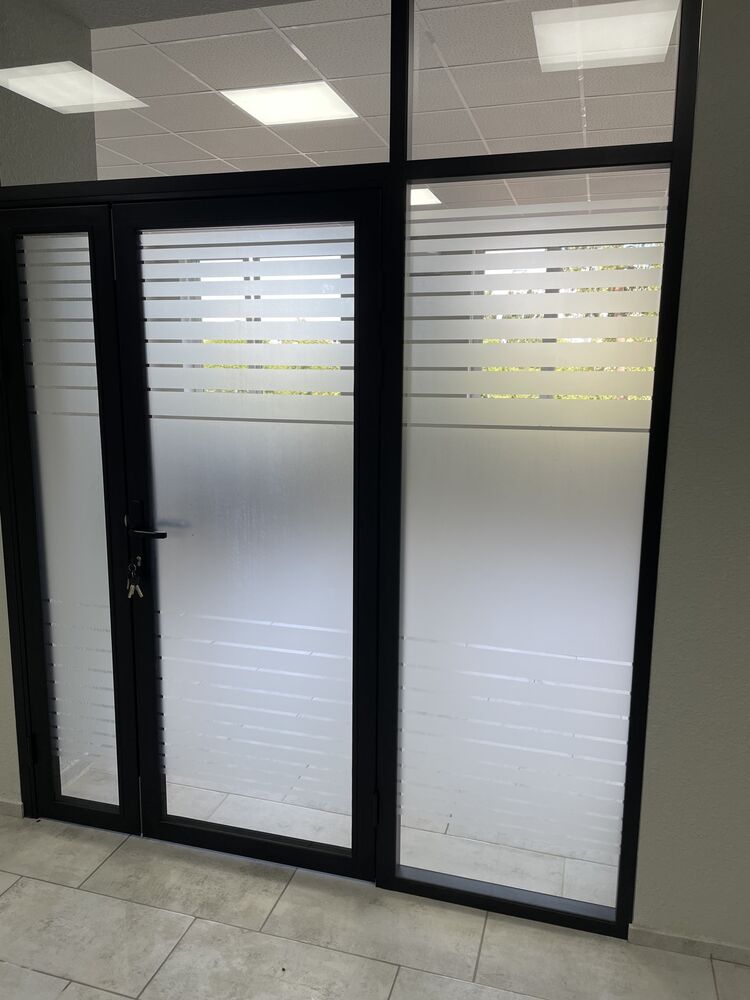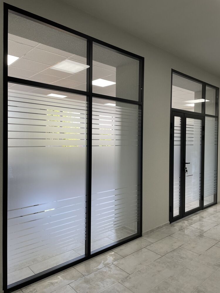 - In order to preserve light transmission, but at the same time to separate the work process from the external life of the office, the partitions were decorated with a matte film.