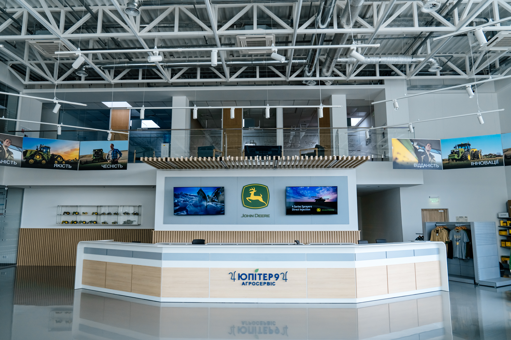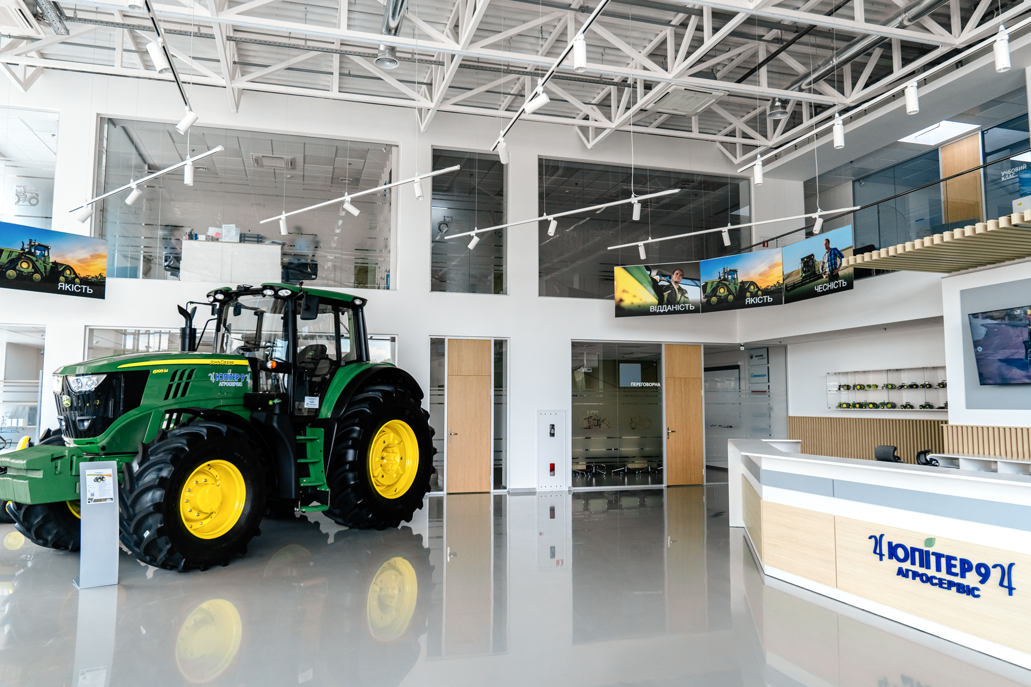 The classic design of the office space for a dealer of world manufacturers of agricultural machinery.